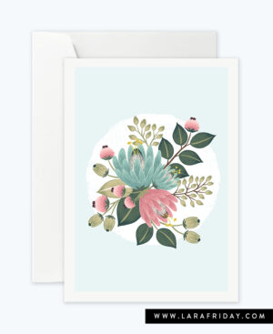 0110 GRAPHIC PINK AND BLUE FLORAL – Greeting Card (Blank inside)