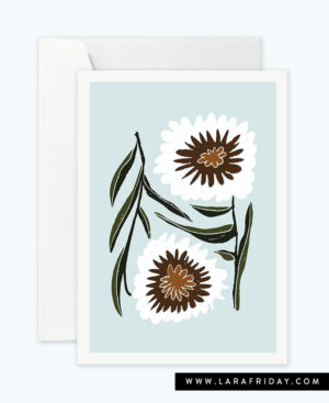 0060 DRAWN WHITE FLOWERS – Greeting Card (Blank inside)