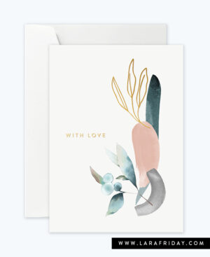 0015 WITH LOVE LEAVES – Foiled Greeting Card (Blank inside)